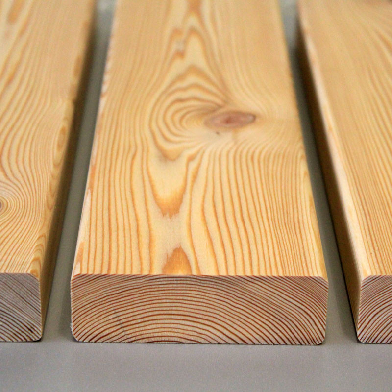 Die Glattkantbretter in A-Sortierung aus sibirischer Lärche sind kammergetrocknet mit 12%(± 2%) Restfeuchte und allseitig glatt gehobelt.