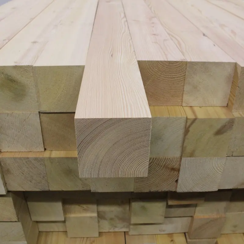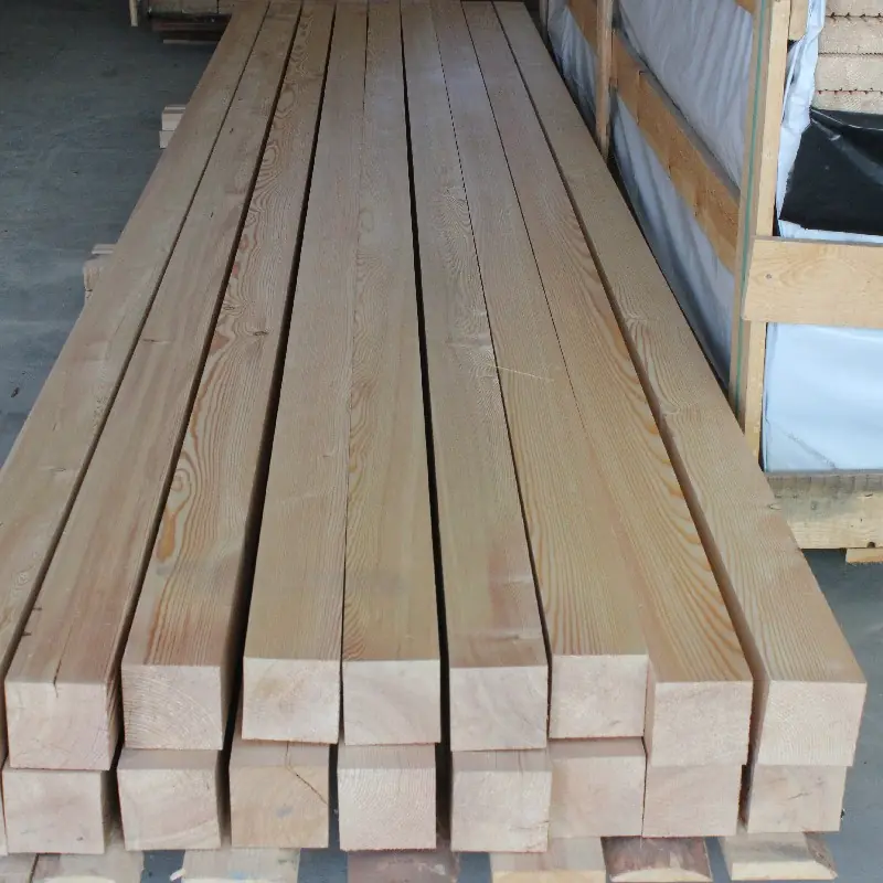 Die Kanthölzer aus Sibirischer Lärche sind kammergetrocknet mit 12%(± 2%) Restfeuchte, allseitig glatt gehobelt und Kanten nicht gefast (nicht abgerundet).