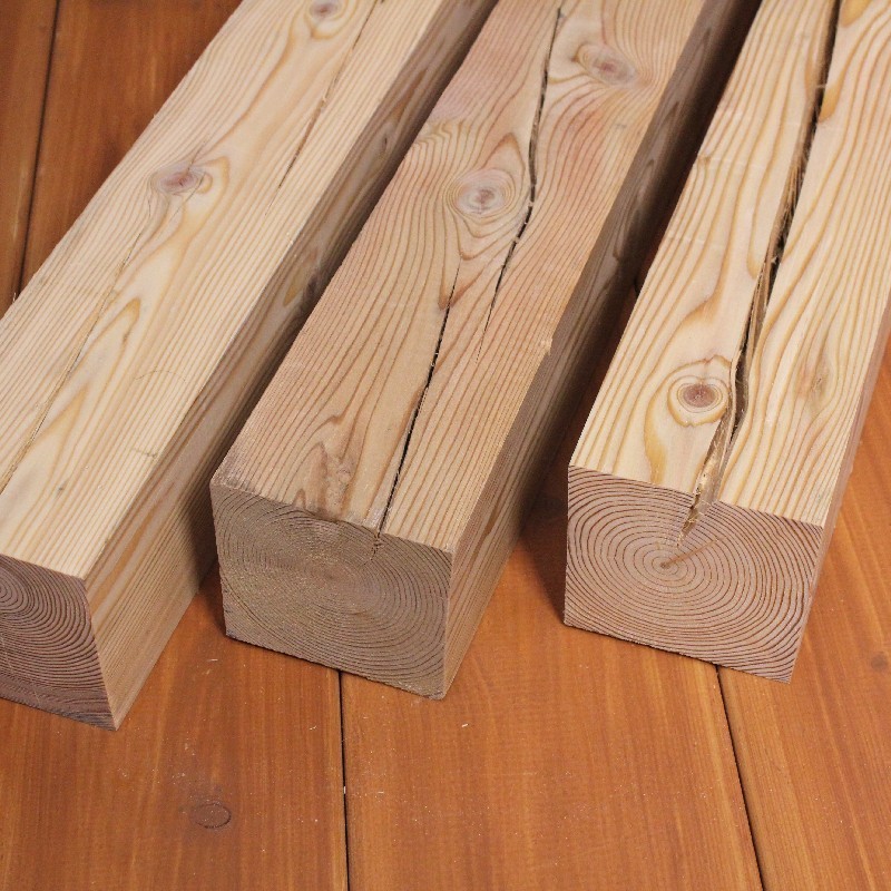 Die Kanthölzer in B-Sortierung aus sibirischer Lärche sind kammergetrocknet mit 18%(± 2%) Restfeuchte und allseitig glatt gehobelt.