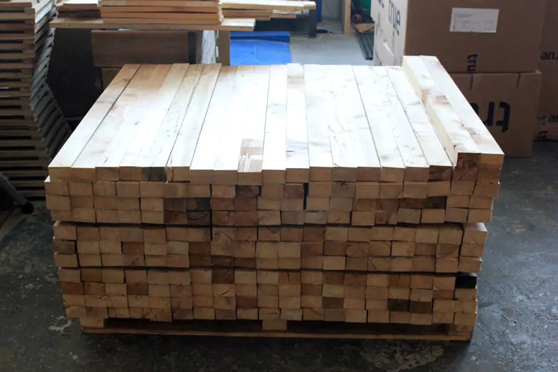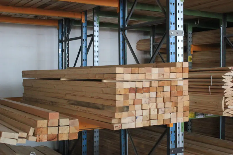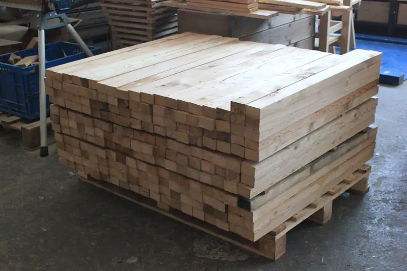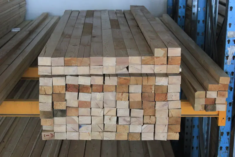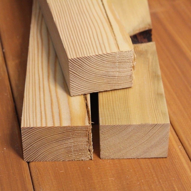 Die Kanthölzer in Restposten aus sibirischer Lärche sind kammergetrocknet mit 12%(± 2%) Restfeuchte und allseitig glatt gehobelt.