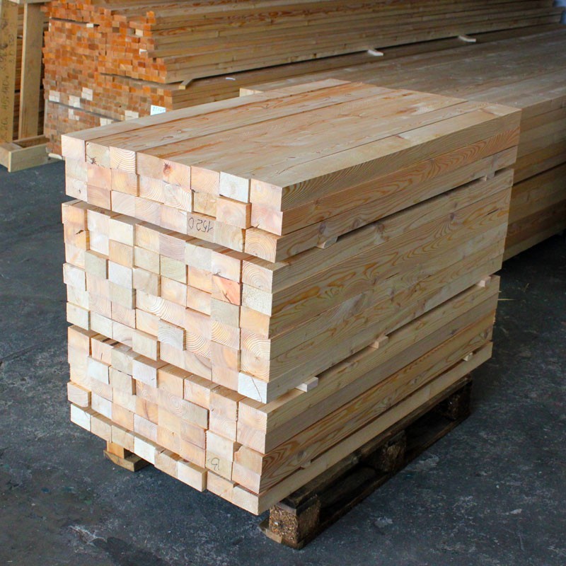 Die Kanthölzer in Restposten aus sibirischer Lärche sind kammergetrocknet mit 14%(± 2%) Restfeuchte und allseitig glatt gehobelt.