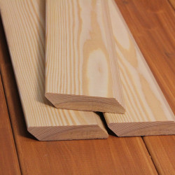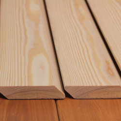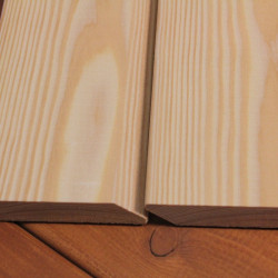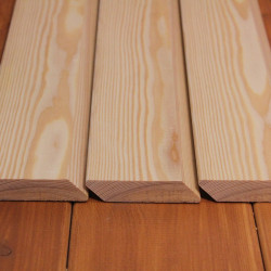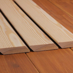 Die Rhombusleisten in E-Sortierung aus sibirischer Lärche sind kammergetrocknet mit 14%(± 2%) Restfeuchte und allseitig glatt gehobelt.