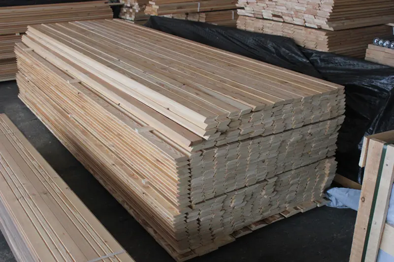 Die Rhombusleisten in A-Sortierung aus sibirischer Lärche sind kammergetrocknet mit 14%(± 2%) Restfeuchte und allseitig glatt gehobelt.
