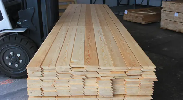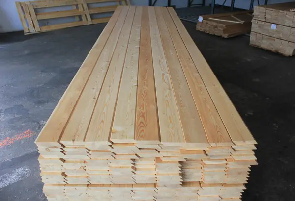 Die Rhombusleisten aus Sibirischer Lärche in A-Sortierung sind kammergetrocknet mit 14%(± 2%) Restfeuchte und allseitig glatt gehobelt.