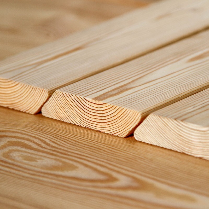 Die Rhombusleisten in A/B-sortierung aus sibirischer Lärche sind kammergetrocknet mit 14%(± 2%) Restfeuchte und allseitig glatt gehobelt.