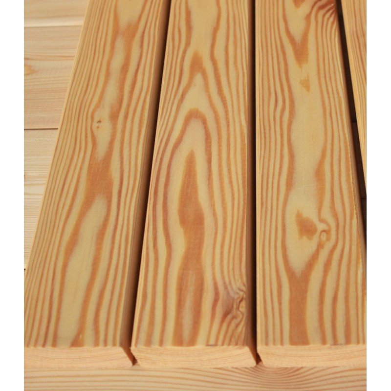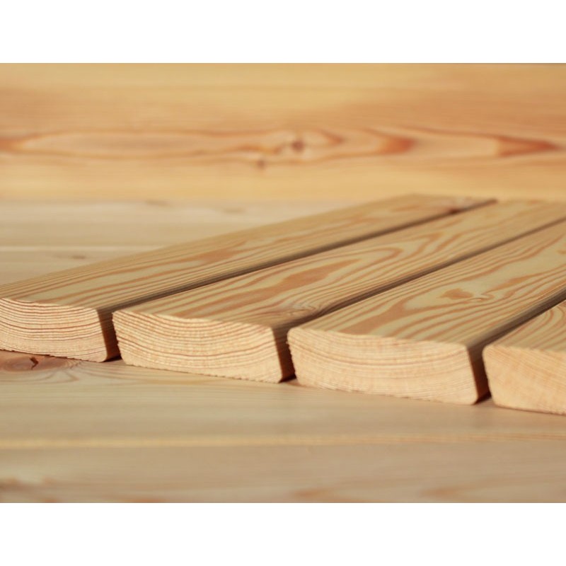 Die Rhombusleisten in E-Sortierung aus sibirischer Lärche sind kammergetrocknet mit 14%(± 2%) Restfeuchte und allseitig glatt gehobelt.