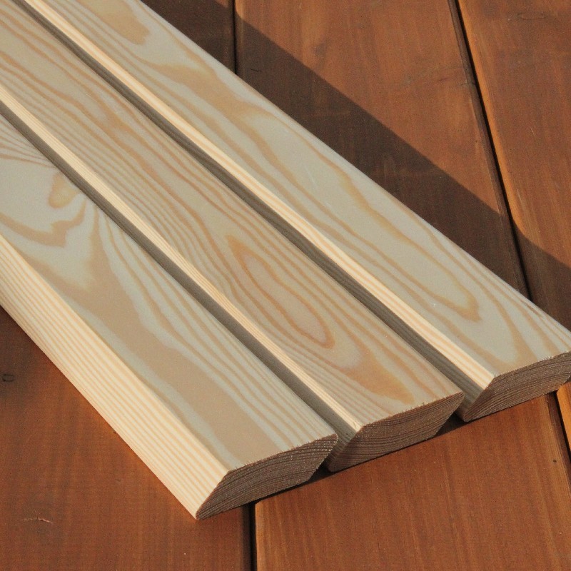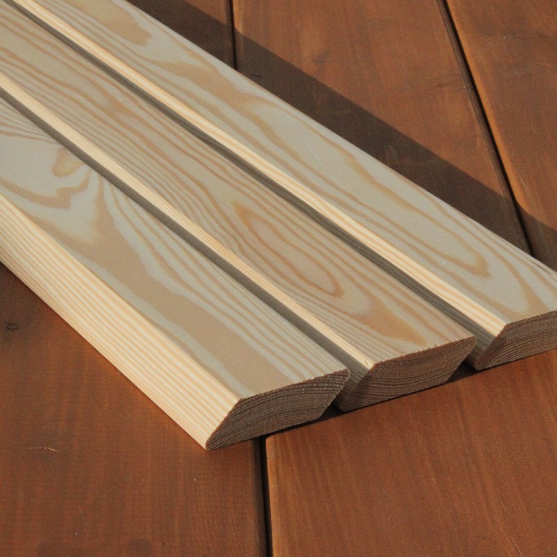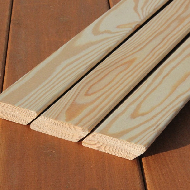 Die Rhombusleisten in E-Sortierung aus sibirischer Lärche sind kammergetrocknet mit 14%(± 2%) Restfeuchte und allseitig glatt gehobelt.